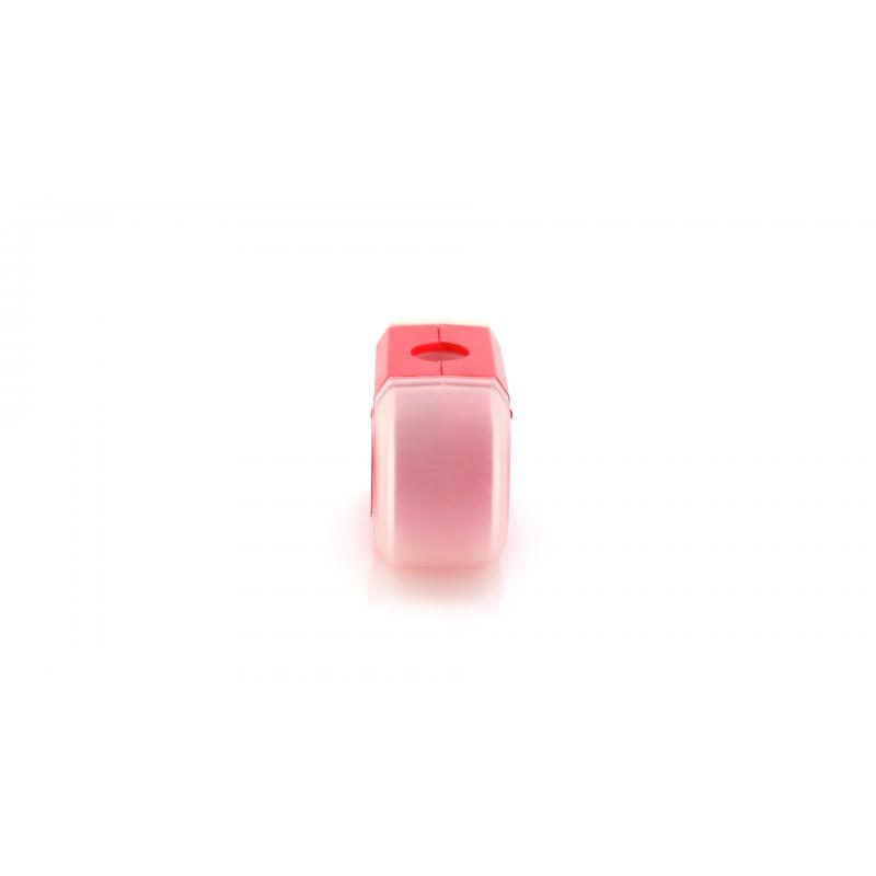 Set de goma y sacapuntas en vivos colores. Compartimento para residuos con capucha transparente.