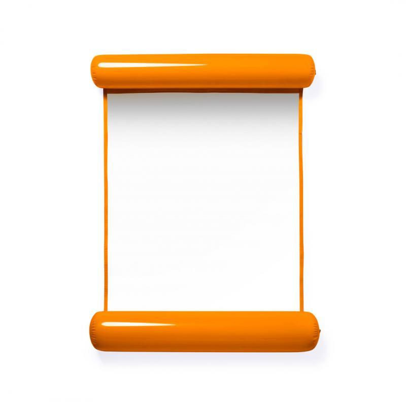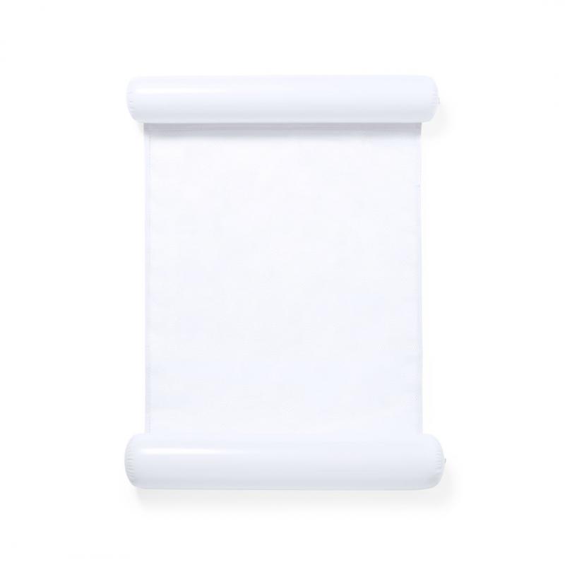 Original colchoneta con extremos hinchables en resistente PVC. Enrollable y con resistente redecilla central de 80x70 cm en poliéster de color blanco. Con plegado especial para fácil impresión y disponible en variada gama de colores.Receptor :