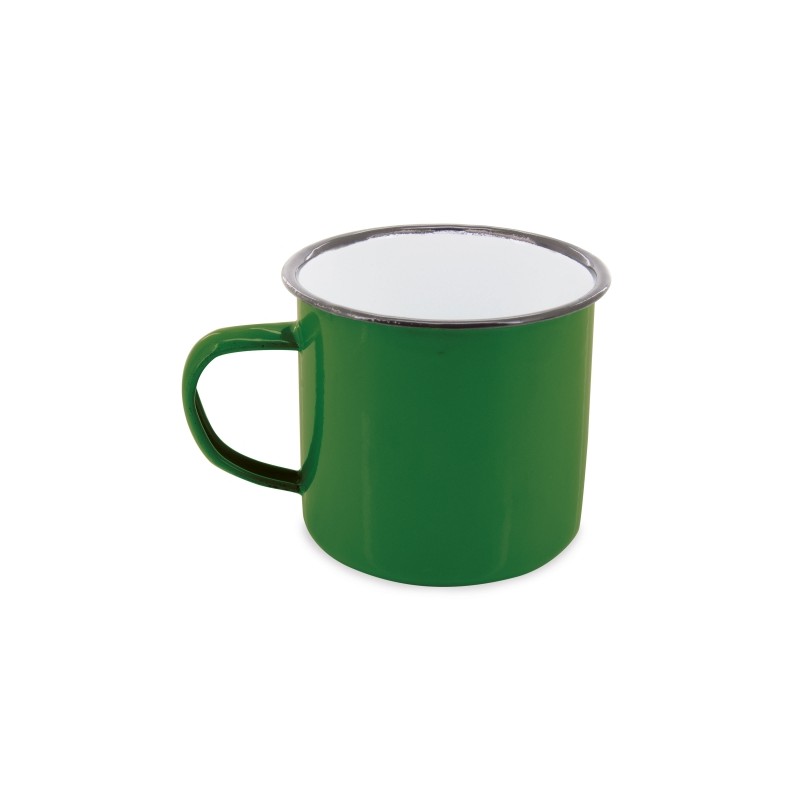 Taza metálica de diseño retro con irregularidades que asemejan las tazas de nuestros abuelos.