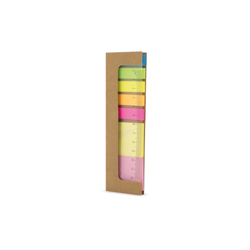 Contiene notas , marcadores de colores autoadhesivos y regla de 12cm
